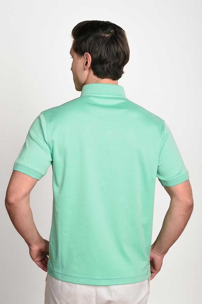 Experience the refined simplicity of our Mercerized Supima Polo T-shirt. Crafted with sleek minimalism – no logos or prints – this polo offers unparalleled versatility for elegant looks. Made with mercerized ultra-soft American-grown Supima cotton, a rare fiber representing less than 1% of the world's cotton, it delivers a luxurious silk-like softness and lightweight comfort. Gentle on sensitive skin and exceptionally durable, it resists shrinking, fading, and twisting, maintaining its vibrant color brilliance. The clean, seamless finish of invisible stitching adds a touch of understated sophistication, making it ideal for both casual outings and upscale events.
